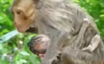 In the peaceful jungle morning, the cries of a newborn echoed softly among the tall trees. A mother monkey had just given birth high up in the branches. Her baby …