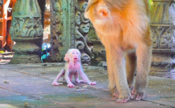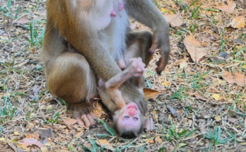 In the heart of the forest, under the warm morning sun, a handsome baby monkey begins an exciting new lesson — learning how to walk! His mother, calm and patient, …