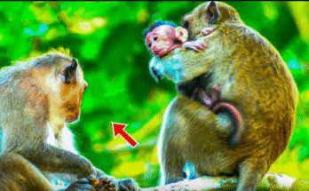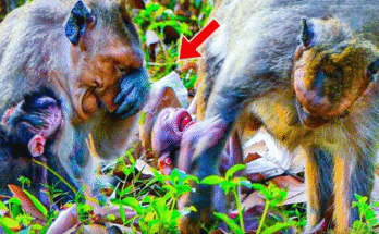 The small jungle clearing was quiet, but the sound of soft, heart-wrenching cries broke the silence. A tiny baby monkey, barely a few months old, clung to a branch with …