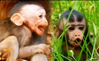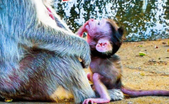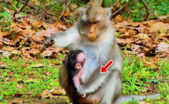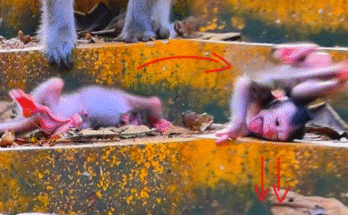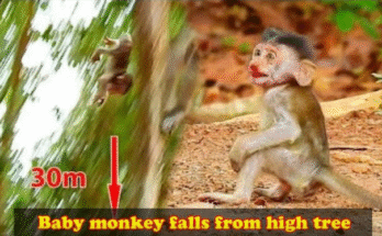 What a heartbreaking moment in the jungle! A tiny baby monkey accidentally slipped into a shallow stream while trying to follow its mother. The poor baby’s soft cries echoed through …