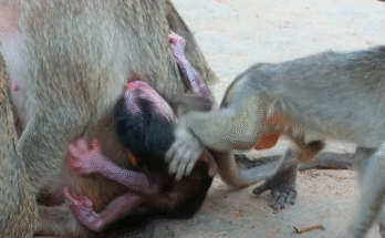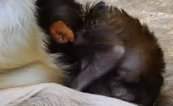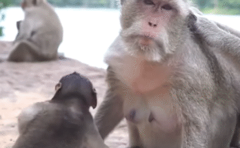 The baby monkey’s soft little cries fill the air as he reaches out for his mother. His tiny hands cling to her fur tightly, and his eyes shine with a …