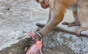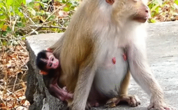 Other monkeys glance curiously, their chatter mixing with Lily’s cries. A kind older female looks on, almost as if she feels the pain in Lily’s heart. Still, the baby gathers her courage and keeps moving forward, her will stronger than her tiny frame.