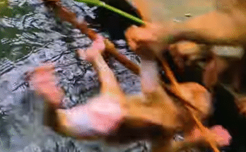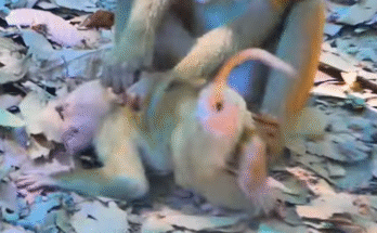 He looked around with wide, teary eyes, hoping to see his mother’s face. But there was no one there. The baby monkey began to cry softly, his voice echoing through the trees. His little hands clutched his tail, and he rocked back and forth, trying to comfort himself. Hunger began to grow inside him, and he didn’t know where to find food or safety.